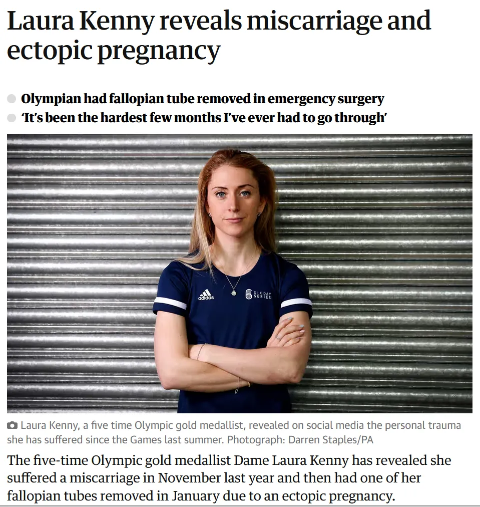Das heißt, Laura Kenny bekam bis August 2021 mit Sicherheit zumindest zwei Covid-Dosen. Da ihre Fehlgeburt im November 2021 in der 9. Schwangerschaftswoche passierte, bestätigt das die Aussage in meinem Tweet: Sowohl die Fehlgeburt als auch die anschließende Eileiterschwangerschaft wurden von der UKHSA in der Kategorie „Keine Dosis während der Schwangerschaft“ erfasst, in der auch die Ungeimpften sind.